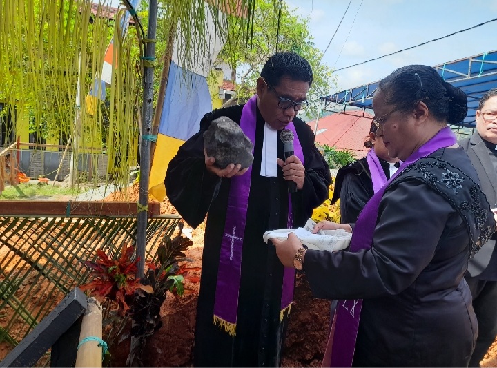AMBON, MARINYO.COM – Warga Sektor Zaitun Jemaat Gereja Protestan Maluku (GPM) Soya, Klasis Pulau Ambon, menggelar Ibadah Peletakan Batu Penjuru Gedung Sentra