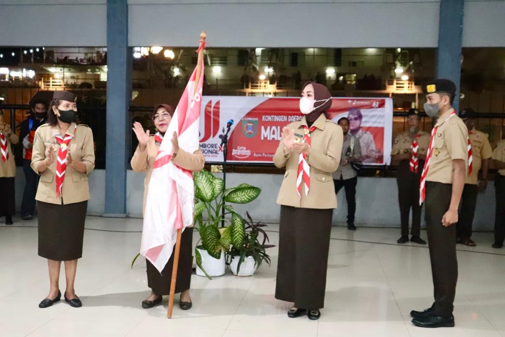 AMBON, MARINYO.COM – Ketua Kwartir Daerah (Kwarda) Gerakan Pramuka Maluku Widya Pratiwi Murad, melepas 11 Kwartir Cabang (Kwarcab) Kabupaten/Kota se-Maluku (Kontingen Daerah Maluku) menuju Jambore Nasional (Jamnas) ke-11 Jakarta, di Bumi Perkemahan dan Graha Wisata Pramuka (Buperta) Cibubur, Jakarta Timur, di lantai II Terminal Tunggu, Pelabuhan Yos Sudarso, Kamis, (28/7/2022).
