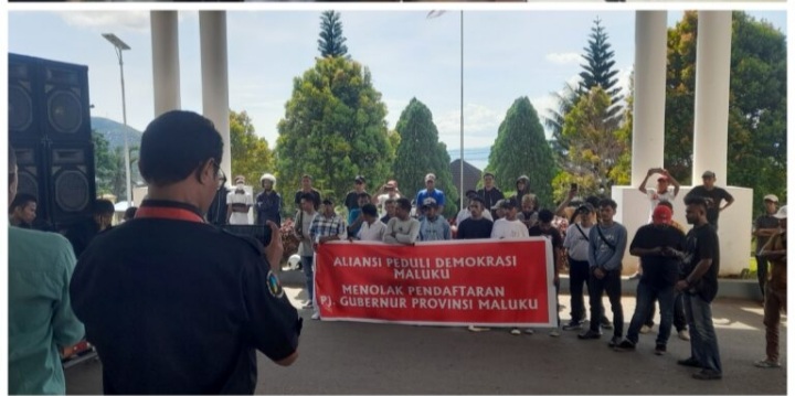 “Kami menolak proses penjaringan. Sebab, sesuai keterangan Mendagri beberapa waktu lalu, bahwa masa jabatan Gubernur Maluku, Murad Ismail dan Barnabas Orno sebagai Wakil Gubernur Maluku berakhir April 2024,”tandas orator pendemo.