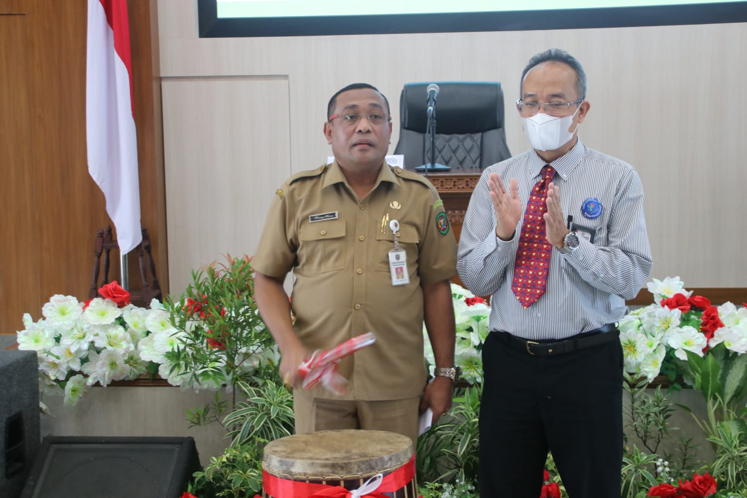 AMBON, MARINYO.COM– Asisten I Bidang Pemerintahan dan Kesejahteraan Rakyat Setda Maluku,  Samuel E. Huwae membuka kegiatan Sosialisasi Survei Biaya Hidup (SBH) Tahun 2022 di Lantai VII kantor Gubernur Maluku, Selasa (22/3/2022).  Saat pembukaan Huwae didampingi Kepala Badan Pusat Statistik (BPS) Provinsi Maluku, Asep Riyadi yang ditandai dengan pemukulan tifa.