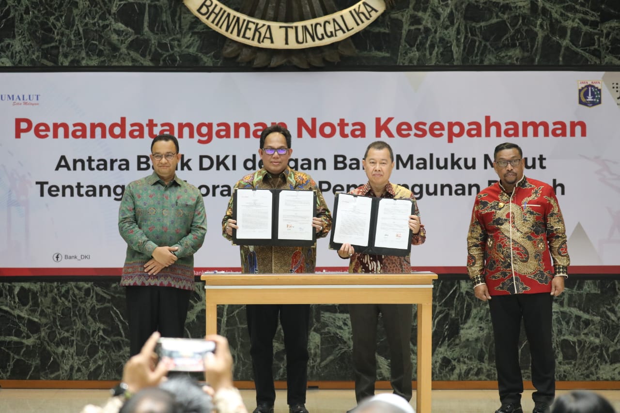 Penandatangan kerjasama diakukan oleh Direktur Utama Bank DKI, Fidri Arnaldy dan Direktur Utama Bank Maluku-Malut, Syahrisal Imbar serta disaksikan oleh Gubernur DKI Jakarta, Anies Rasyid Baswedan, Gubernur Maluku, Murad Ismail, Gubernur Maluku Utara, Abdul Ghani Kasuba, Kepala Eksekutif Pengawas Perbankan Otoritas Jasa Keuangan, Dian Ediana Rae, Plt. Deputi Komisioner Pengawasan Perbankan IV Otoritas Jasa Keuangan, Bambang Widjanarko, Kepala Otoritas Jasa Keuangan Kantor Regional 1 DKI Jakarta & Banten, Roberto Akyuwen, Kepala OJK Kantor Regional 6 Sulawesi Maluku Papua, Darwisman, Kepala Otoritas Jasa Keuangan Maluku, Roni Nazra, beserta seluruh pejabat Pemerintah Provinsi DKI Jakarta, jajaran Direksi Bank DKI dan BUMD DKI Jakarta.