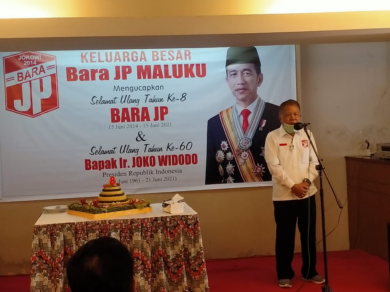 Ketua DPD BARA JP Provinsi Maluku, Hengki Sirait, dalam sambutannya menyampaikan selamat ulang tahun kepada Presiden RI ke 7 itu.
