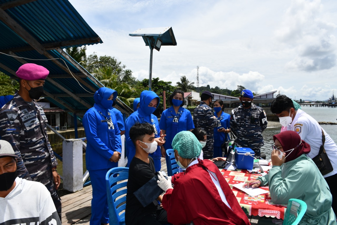AMBON, MARINYO.COM- Lantamal IX kembali melaksanakan vaksinasi kepada penumpang dan pengemudi speed boat di dermaga speed boat Wayame. Tim vaksinator Lantamal IX mendatangi pusat kegiatan masyarakat pesisir di dermaga speed boat Wayame Ambon, Senin (27/9/2021).