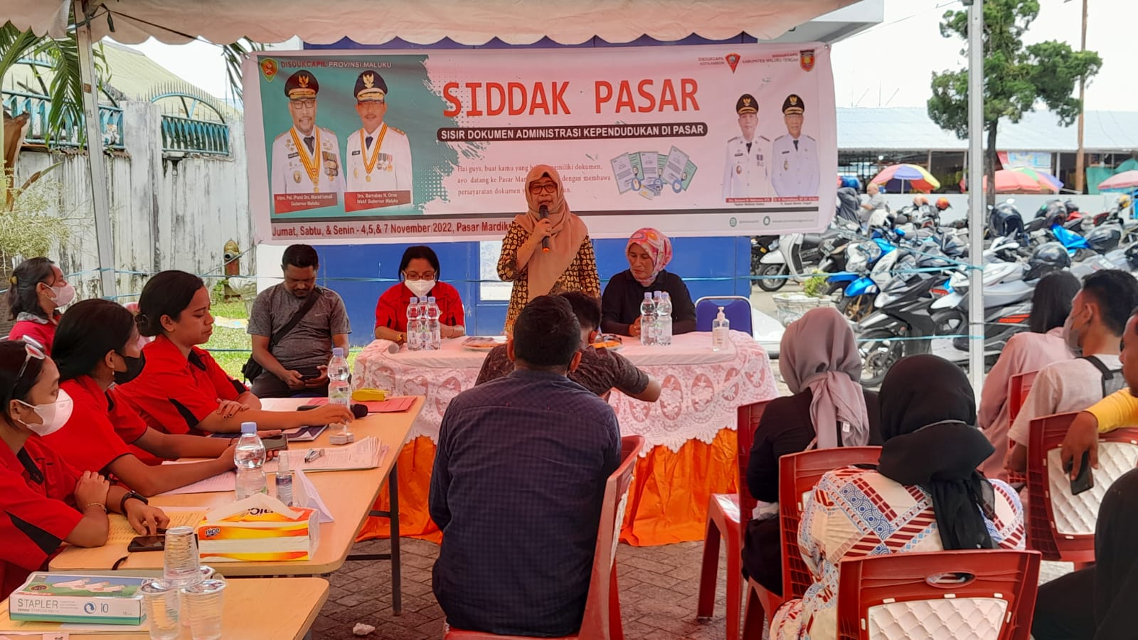 Sasaran pelayanan Siddak kali ini untuk mendekatkan layanan adminduk, bagi para pedagang dari Maluku Tengah yang berdagang di Kota Ambon dan pedagang kota, yang dipusatkan di Pelataran Kantor Bank Mandiri, Jembatan Desa Batu Merah, Kota Ambon, Jumat (4/11/2022).