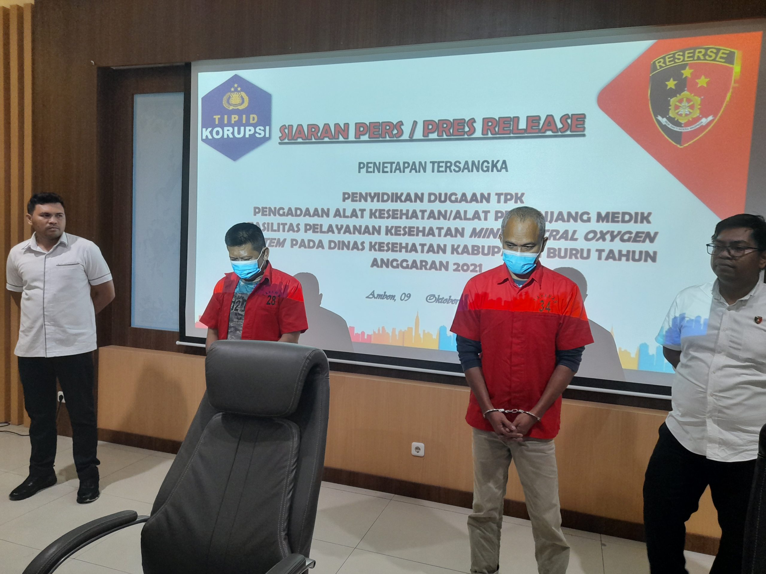 AMBON, MARINYO.COM- Penyidik Ditreskrimus Polda Maluku akhirnya menetapkan dua tersangka kasus dugaan Tindak Pidana Korupsi (TPK) pengadaan alat kesehatan/alat penunjang medik fasilitas pelayanan kesehatan mini central pxugen system pada Dinas Kesehatan Kabupaten Buru Tahun 2021.