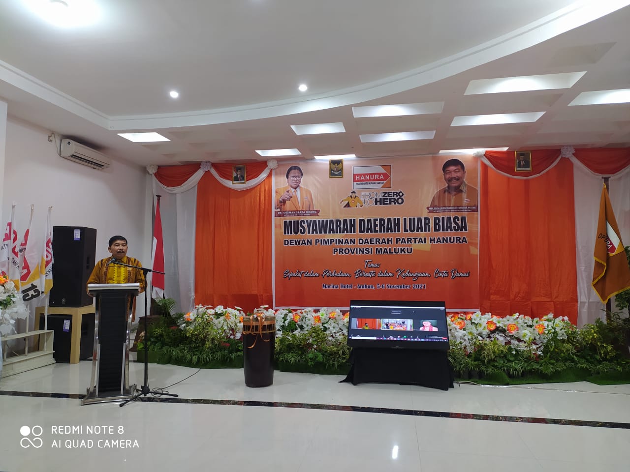 AMBON, MARINYO.COM- DPD Partai Hati Nurani Rakyat (Hanura) Provinsi Maluku, Jumat (5/11/2021) resmi menggelar Musyawarah Daerah Luar Biasa (Musdalub).