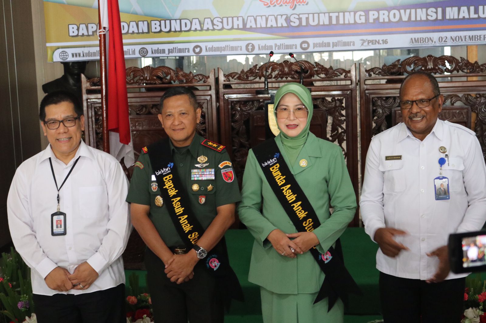 Pengukuhan ini menindaklanjuti Peraturan Presiden (Perpres) Nomor 72 Tahun 2021 tentang Percepatan Penurunan Stunting, Badan Kependudukan dan Keluarga Berencana Nasional (BKKBN) Provinsi Maluku menyelenggarakan pelaksanaan pengukuhan Duta Bapak Bunda Asuh Anak Stunting Provinsi Maluku, di Ruang Lobi Makodam XVI/Pattimura, Rabu, (2/11/2022).