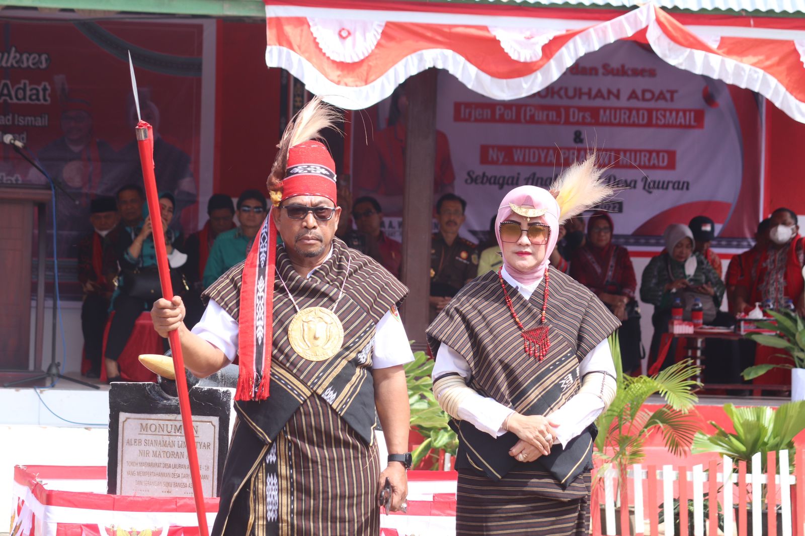 SAUMLAKI, MARINYO.COM– Gubernur Maluku, Irjen Pol ( Purn) Drs. Murad Ismail dan isteri Ny. Widya Pratiwi Murad Ismail, dianugrahi gelar adat oleh tua-tua adat Desa Lauran, Kecamatan Tanimbar Selatan, Kabupaten Kepulauan Tanimbar (KKT).