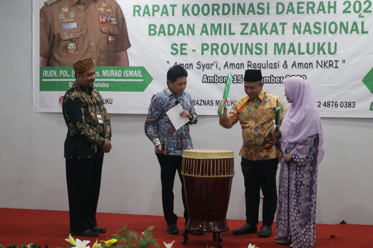 Pembukaan Rakorda ditandai dengan pemukulan tifa oleh Penjabat Sekda Maluku Sadali Ie bersama-sama Wakil Ketua BAZNAS RI Mokhamad Mahdum.