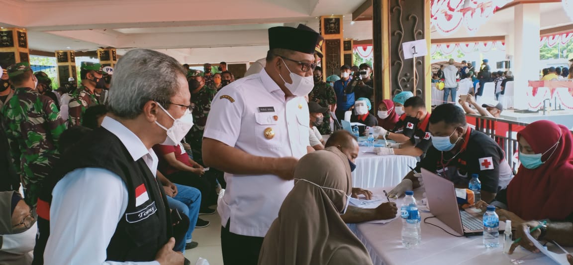AMBON, MARINYO.COM- Gubernur Maluku Murad Ismail meninjau kegiatan Vaksinasi Covid-19 Menuju 1 Juta Orang per Hari yang digelar di Tribun Lapangan Merdeka, Kota Ambon, Sabtu, (26/6/2021). Program tersebut untuk menghambat penyebaran Covid-19 ini, akan dilaksakan selama lima hari kedepan untuk usia 18 tahun ke atas.