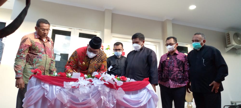 AMBON, MARINYO.COM- Gubernur Maluku, Murad Ismail dan Wakil Gubernut, Barnabas Orno menghadiri Pentahbisan Gedung Pastori Sinode GPM yang terletak di Jl. Telukabessy, Kota Ambon, Jumat (11/6/2021).