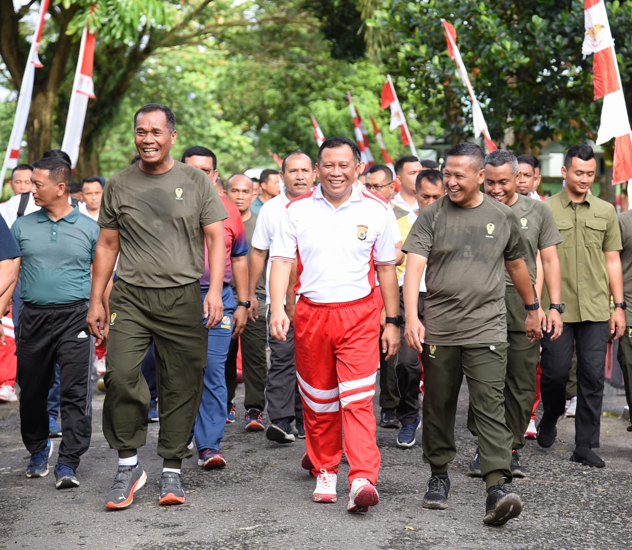 AMBON, MARINYO.COM- Kapolda Maluku Irjen Pol Lotharia Latif, mengikuti olahraga sinergitas bersama antara TNI-Polri dan Forum Komunikasi Pimpinan Daerah (SKPD) Maluku.