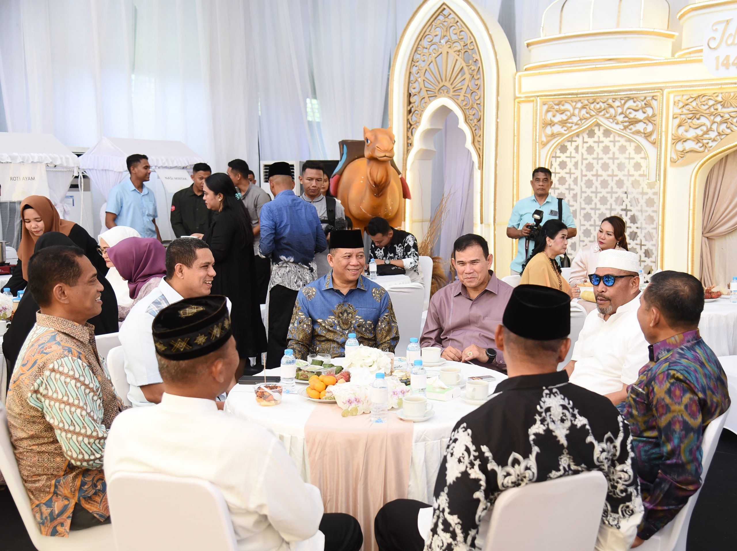 AMBON, MARINYO.COM- Kepala Kepolisian Daerah Maluku Irjen Pol Lotharia Latif, menghadiri acara Halal Bihalal yang dilaksanakan di kediaman Gubernur Maluku, Irjen Pol (Purn) Murad Ismail, kawasan Wailela, Kota Ambon, Rabu (10/4/2024).