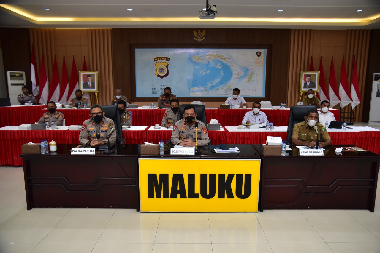 AMBON, MARINYO.COM– Kepala Kepolisian Daerah Maluku Irjen Pol Drs. Lotharia Latif, SH., M.Hum, mengikuti rapat pembahasan terkait kelangkaan minyak goreng yang diterjadi di Indonesia.