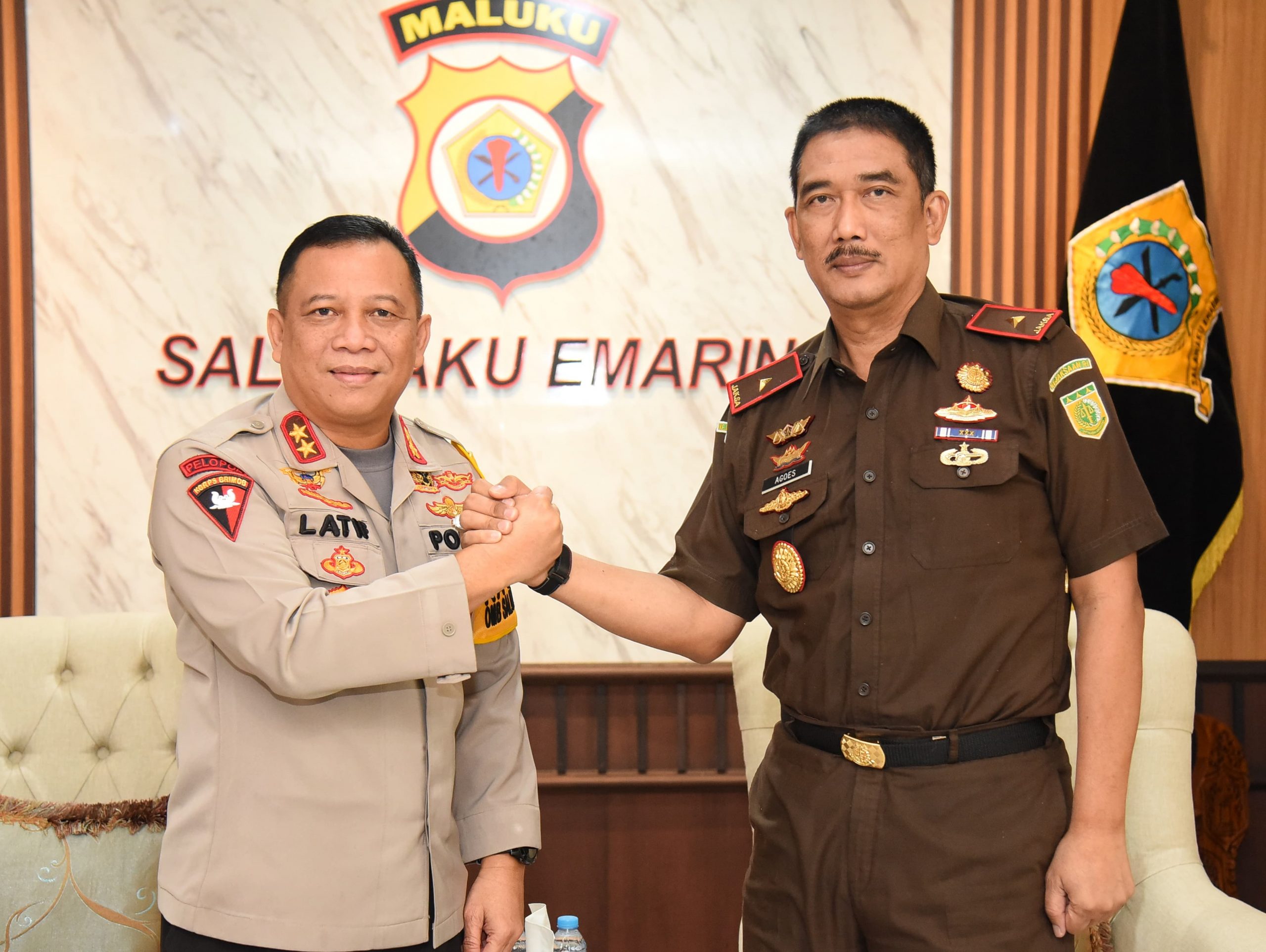 AMBON, MARINYO.COM- Kepala Kepolisian Daerah Maluku, Irjen Pol Lotharia Latif, menerima kunjungan Kepala Kejaksaan Tinggi Maluku, Agoes Soenanto Prasetyo, Selasa (7/11/2023).