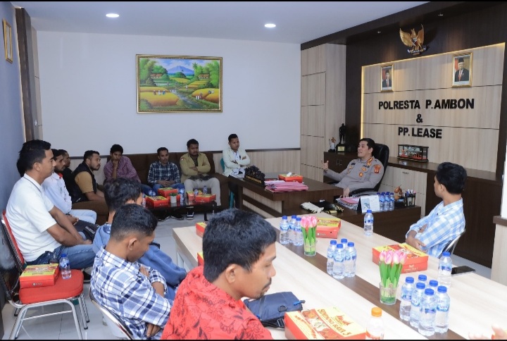 AMBON, MARINYO.COM- Kapolresta Pulau Ambon dan Pp Lease, Kombes Pol. Driyano Andri Ibrahim, SH, SIK melaksanakan pertemuan dengan seluruh OKP Cipayung dan Perwakilan LSM serta LBH Se- Kota Ambon.