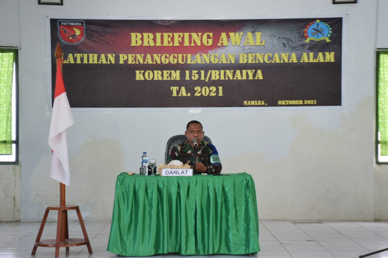 Mengawali arahanya, Danrem 151/Binaiya Brigjen TNI Arnold A.P. Ritiauw mengatakan bahwa latihan yang akan dilaksanakan nanti, bertujuan untuk mengingatkan kepada masyarakat dan semua pelaku simulasi penanggulangan bencana.