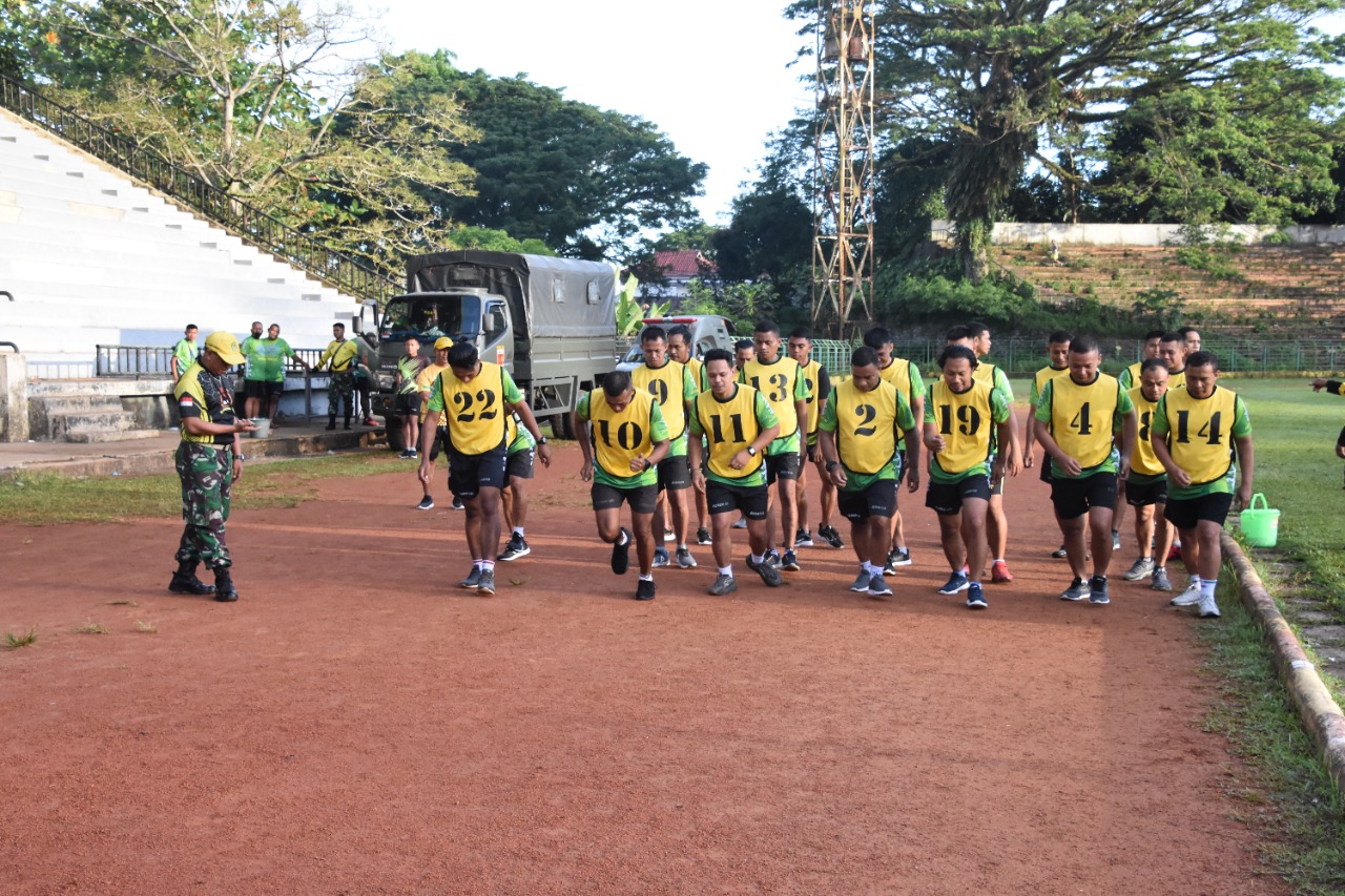 AMBON, MARINYO.COM- Prajurit Korem 151/Binaiya melaksanakan tes Kesegaran Jasmani (Garjas) Periodik II TA. 2021 di lapangan Karang Panjang(Karpan), Senin (8/11/2021).