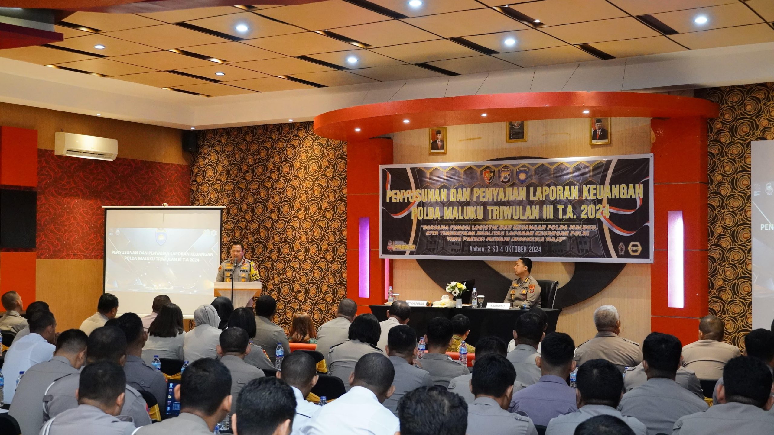 Kegiatan penyusunan dan penyajian laporan keuangan Polda Maluku triwulan III tahun anggaran 2024 mengusung tema “Bersama fungsi logistik dan keuangan Polda Maluku, kita tingkatkan kualitas laporan keuangan Polri yang presisi menuju Indonesia maju”.