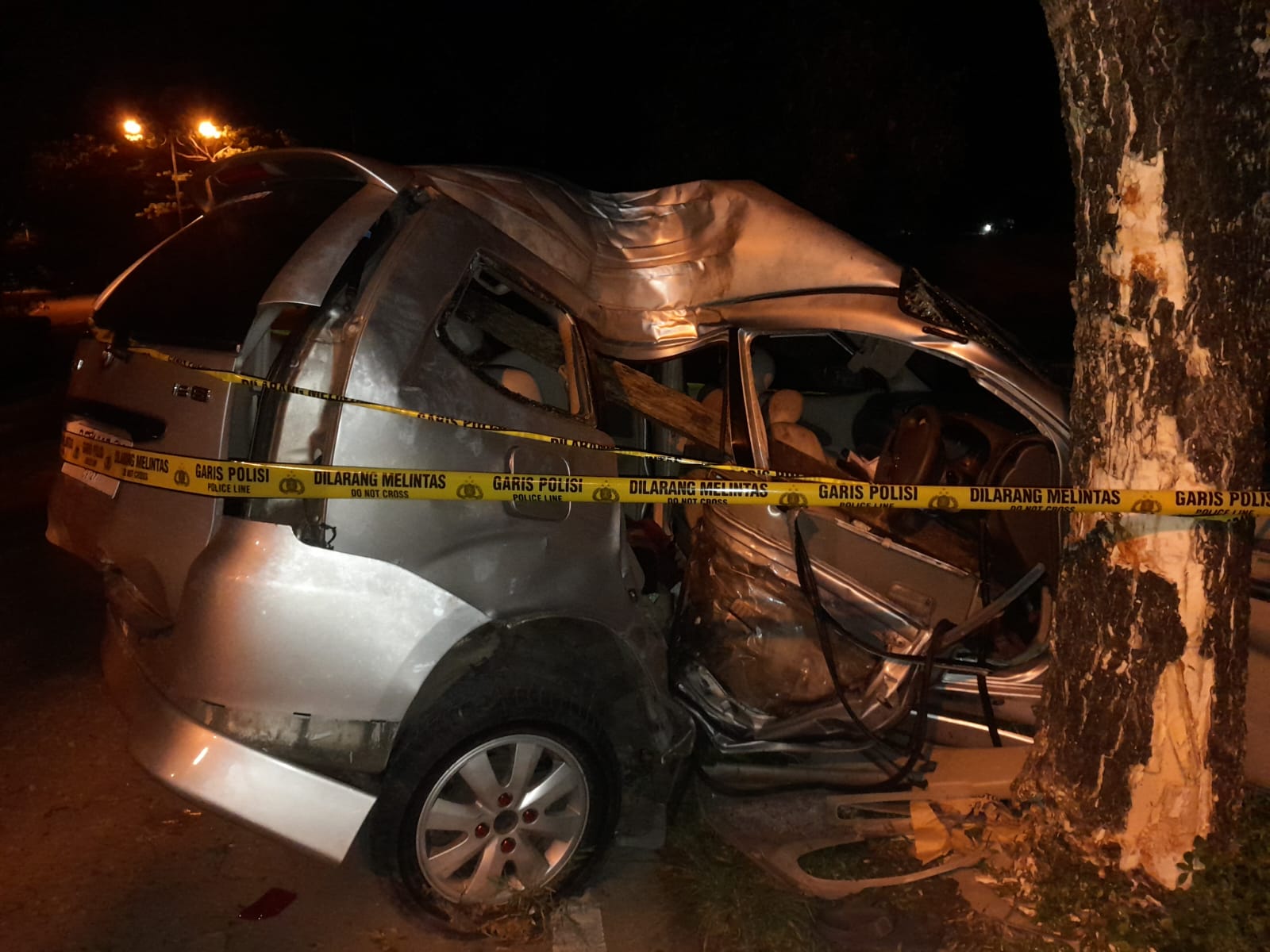 Kejadian ini terjadi pukul 23.30 wit lantaran mobil Toyota Avanza DE 1207 AI berwarna Silver yang menabrak Pembatas jalan utama dan terpental pada Pohon penghijauan di samping kiri jalan.