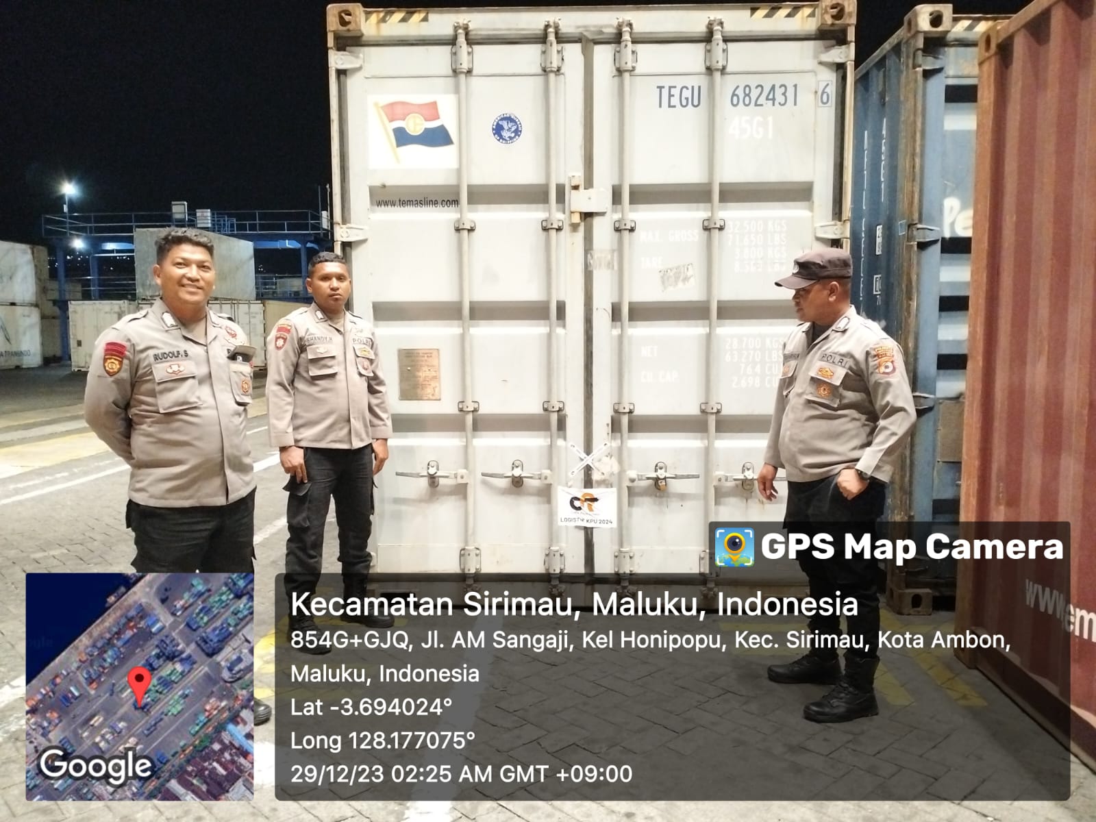 Proses pengamanan dilakukan hingga Pukul 02.12 Wit Kontener diturunkan dari atas Kapal dan di bawa ke lapangan Penumpukan tepatnya di lokasi 2B Slot 26 Rol 1 tir 1. Hingga Kontener tersebut di Lapangan Penumpukan Kontener itu diamankan oleh 4 ( empat ) pers DitSamapta Polda Maluku 4 ( empat ) Pers Polsek KPYS Ambon.
