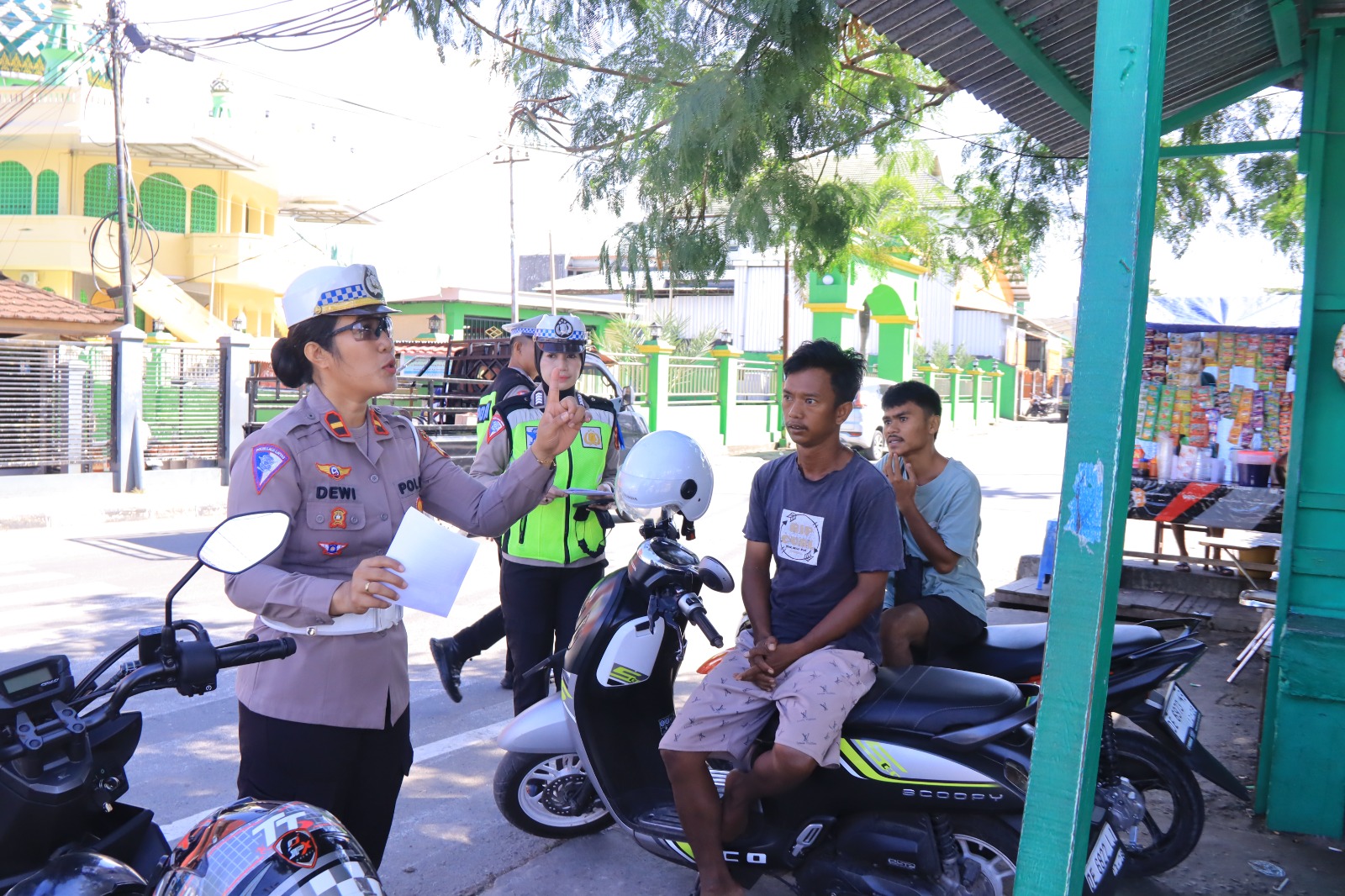 Saat menjalankan operasi, tampak personel Ditlantas Polda Maluku memberikan himbauan dan membagikan brosur berisi himbauan keselamatan berlalulintas kepada warga.