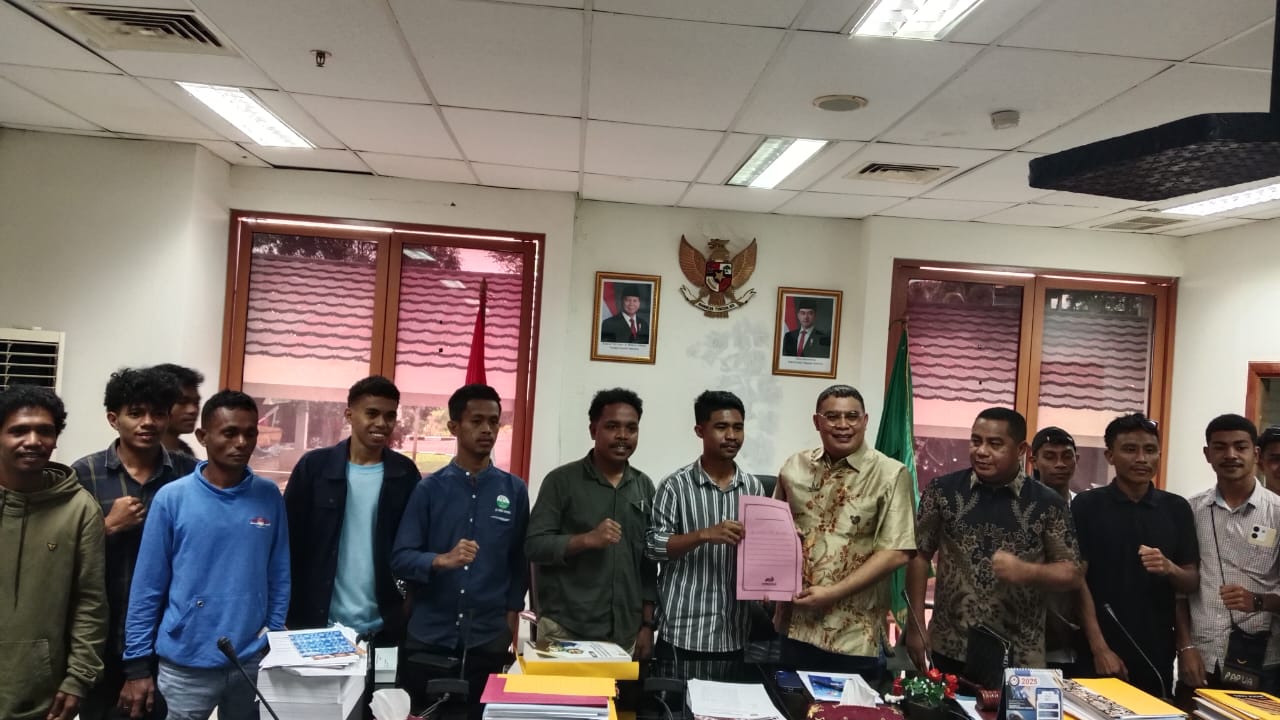 AMBON, MARINYO.COM-Puluhan pemuda dari Kecamatan Ambalau, Kabupaten Buru Selatan, menggelar aksi demonstrasi di depan gedung DPRD Provinsi Maluku, Senin (11/8/2025). Mereka menuntut agar Jalan Lingkar Ambalau segera dialihkan statusnya dari jalan kabupaten menjadi jalan provinsi.