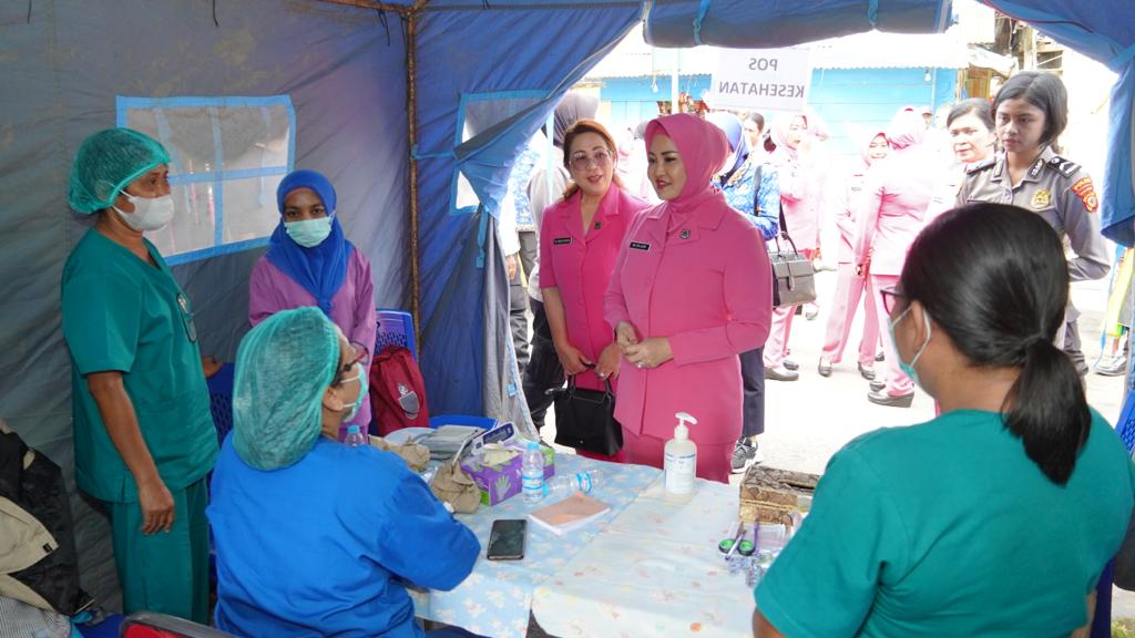 Kegiatan bakti sosial (baksos) itu dipimpin langsung oleh Ketua Bhayangkari Daerah Maluku, Ny. Evi Lotharia Latif, SH,Wakil Ketua Ny. Fenny Jan de Fretes,