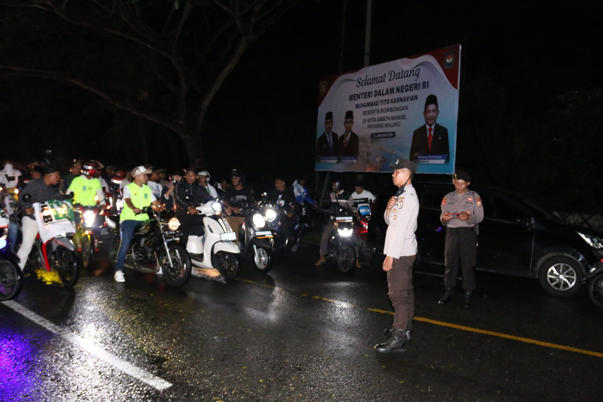 AMBON, MARINYO.COM- Kepolisian Daerah Maluku melakukan pengamanan terhadap kunjungan Calon Presiden Nomor urut 1, Anies Rasyid Baswedan di Kota Ambon, Minggu malam (14/1/2024).