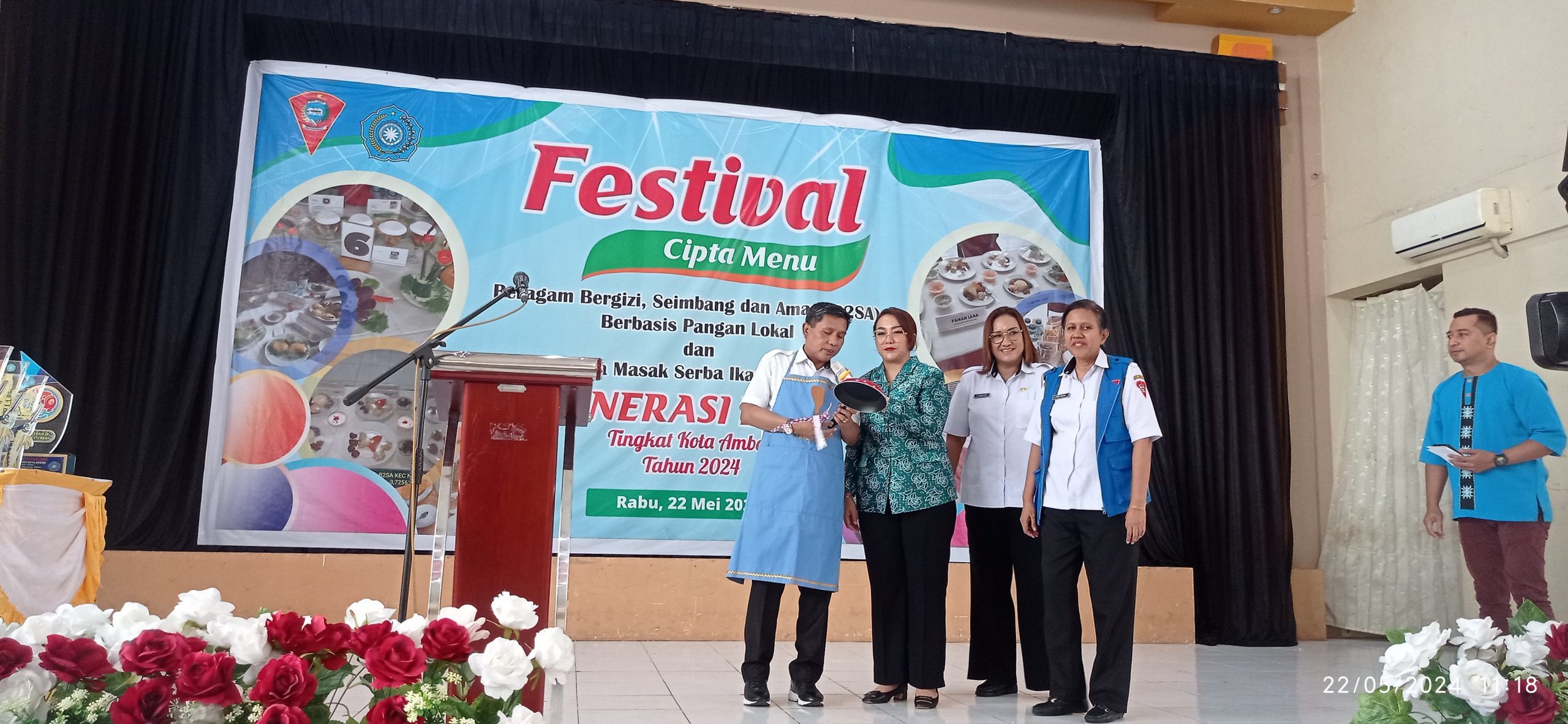 AMBON,MARINYO.COM- Penjabat Walikota Ambon Bodewin Wattimena, Rabu (22/5/2024) membuka kegiatan festival cipta menu beragam,bergizi,seimbang dan aman (B2SA ) dan lomba masak serba ikan untuk generasi emas tingkat Kota Ambon tahun 2024 yang berlangsung gedung serbaguna Xaverius.
