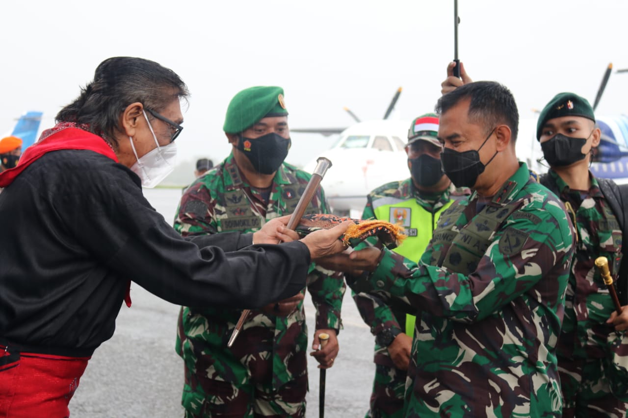 Pangdam dan istri, kemudian disambut Tarian Lenso dari Sanggar Kayla.