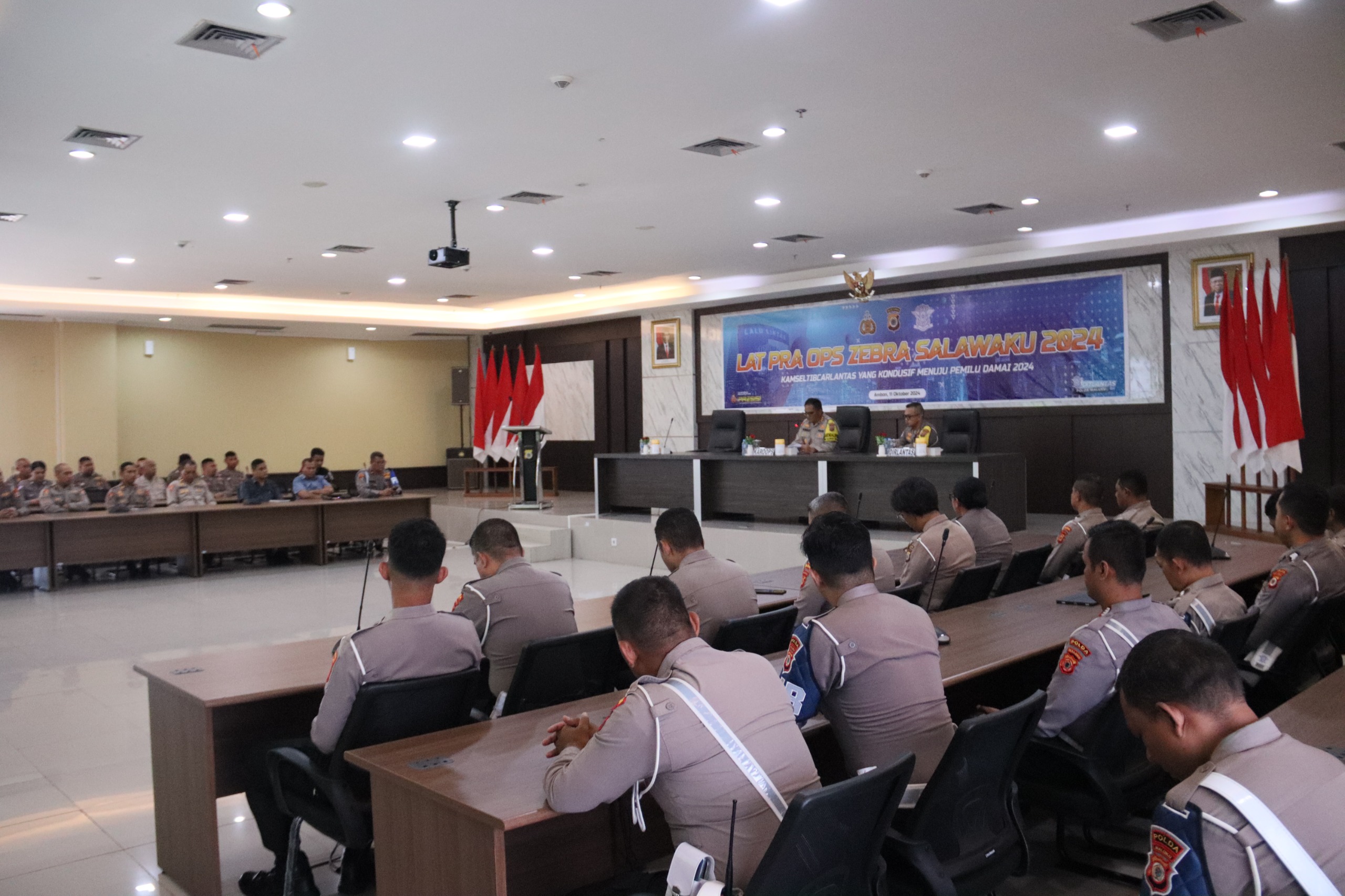 Latihan Pra Operasi Zebra Salawaku 2024 dipimpin Karo Ops Polda Maluku, Kombes Pol Ronald Refli Rumondor S.Ik. Ia didampingi Direktur Lalulintas Polda Maluku.
