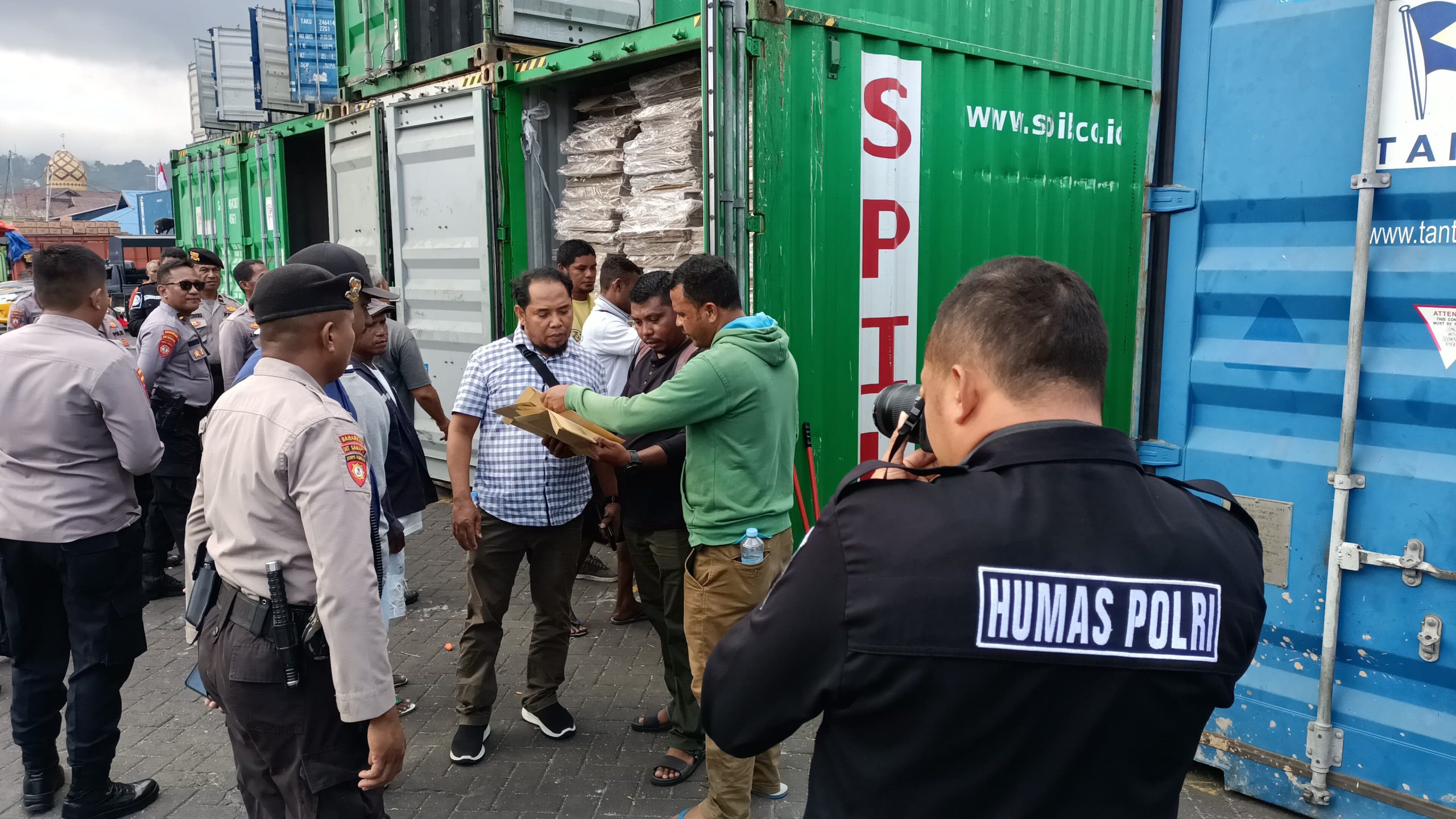 Proses pengamanan logistik Pemilu berupa kotak suara tersebut turut dihadiri Kapolsek Kawasan Pelabuhan Yos Sudarso (KPYS) Iptu Julkisno Kaisupy beserta personelnya.