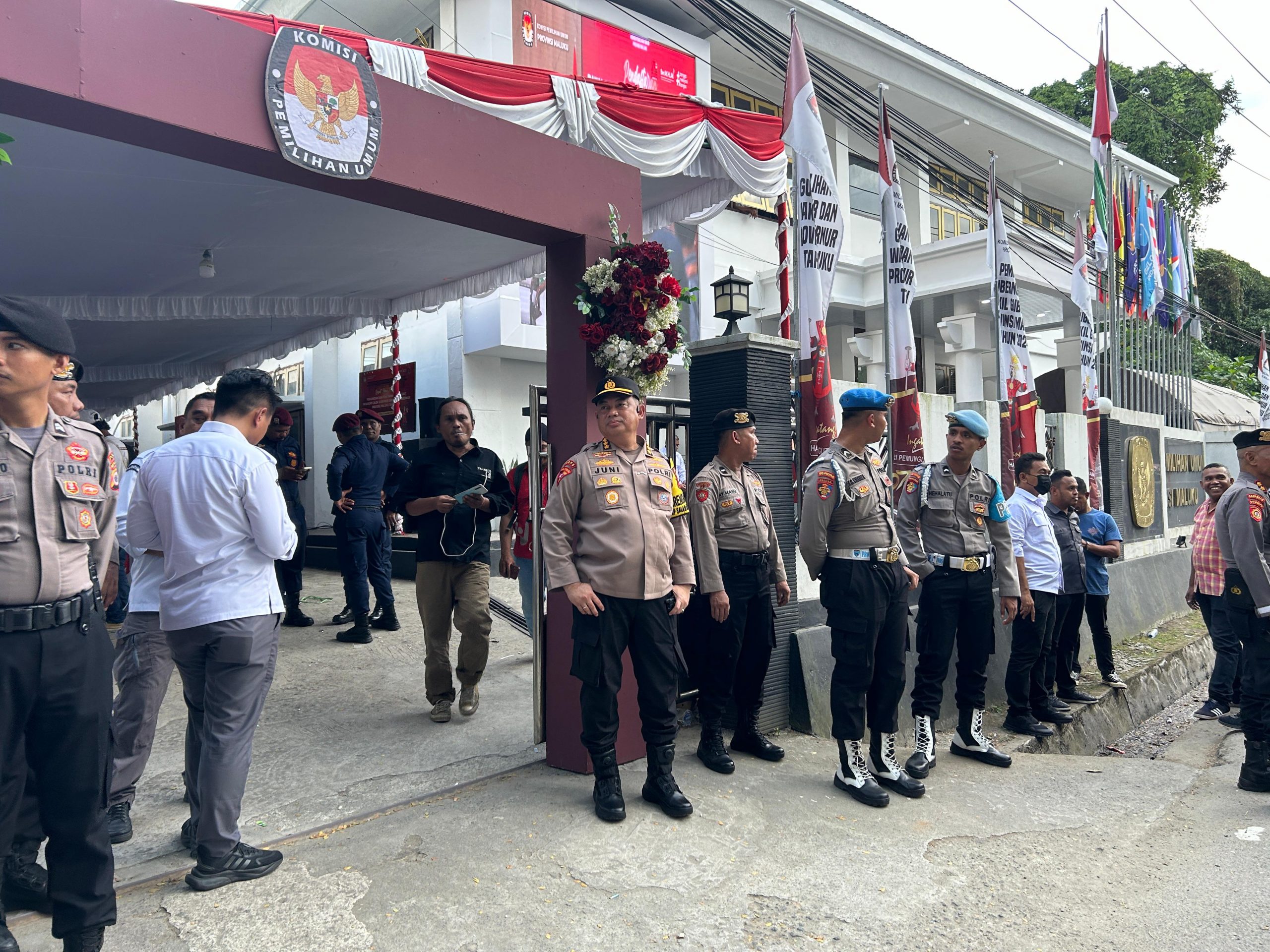Pengamanan tahapan akhir pencalonan kepala daerah ini dipantau langsung oleh Seluruh PJU Polda Maluku yang terlibat langsung sebagai komandan-Komandan Satuan Tugas (Kasatgas), baik yg terjun langsung di Kantor KPU maupun yang memabtau perkembangan Situasi pada Pos Pantau di Lapangan Tahapari.