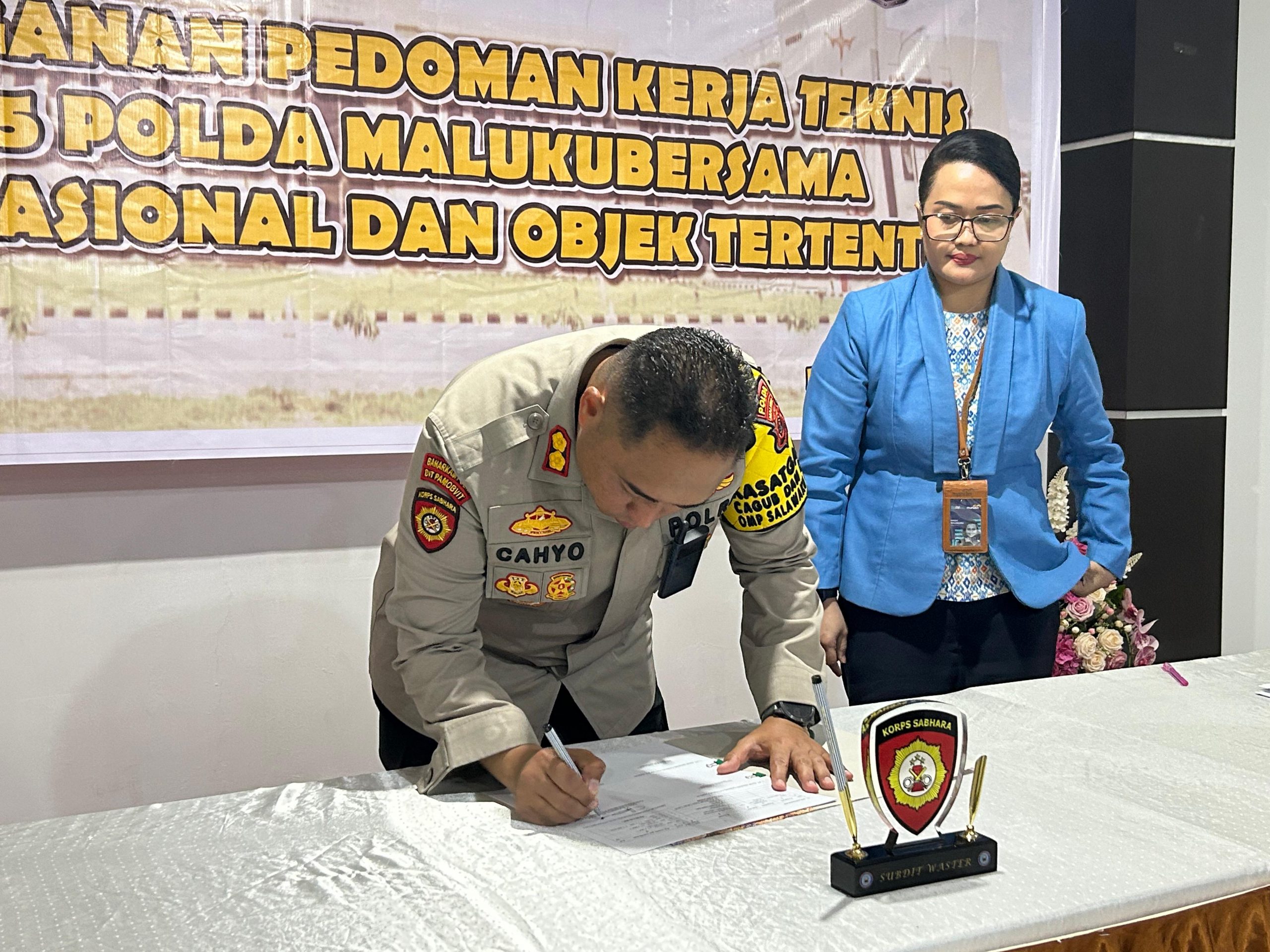AMBON, MARINYO.COM- Kepolisian Daerah Maluku menggelar penandatanganan Pedoman Kerja Teknis (PKT) bersama Objek Vital Nasional (Obvitnas) dan Objek Tertentu (Obter).