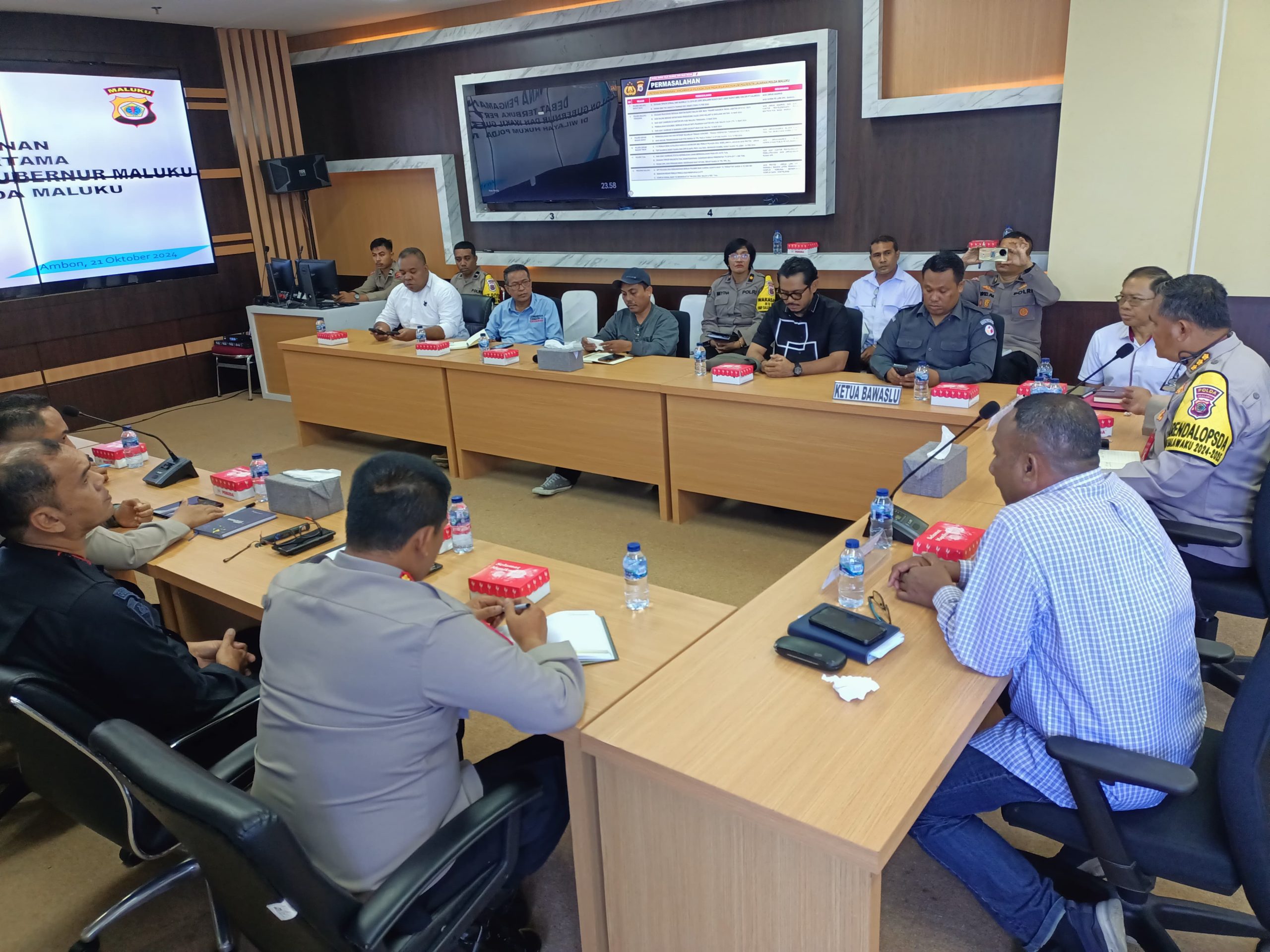 AMBON, MARINYO.COM- Kepolisian Daerah Maluku melaksanakan rapat teknis untuk persiapan pengamanan debat Pilkada calon gubernur dan wakil gubernur yang akan dilakukan KPU provinsi Maluku.
