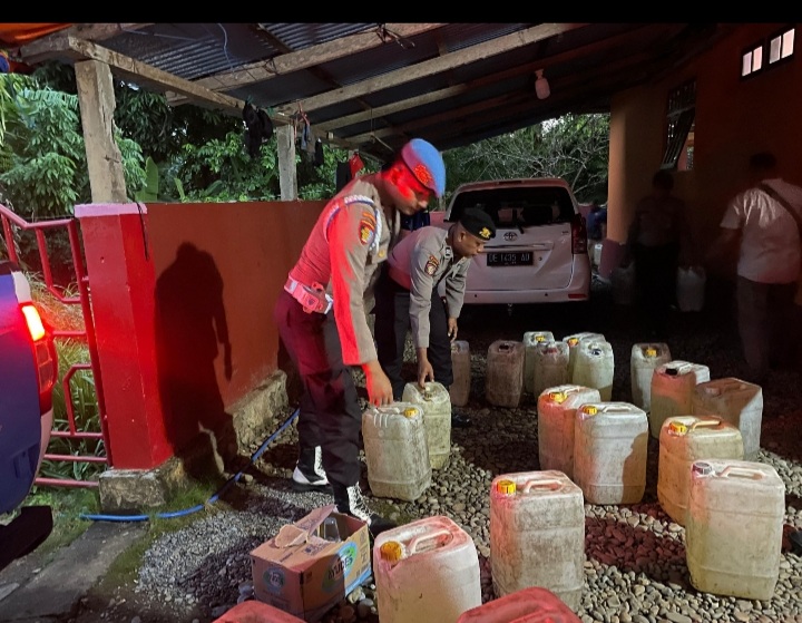 Miras tradisional tersebut ditemukan tersimpan di dalam 40 jerigen berukuran 25 liter. Ribuan liter minuman memabukan ini ditemukan di rumah SS (59), warga Alang.