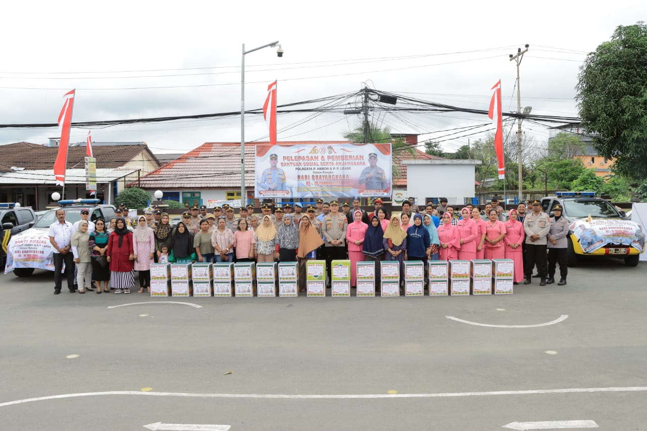 AMBON, MARINYO.COM-Dalam rangka memperingati Hari Bhayangkara yang ke-78 tahun 2024, Kepolisian Resort Kota (Polresta) Ambon dan Pp Lease, membagikan seribu paket bantuan sosial (bansos).
