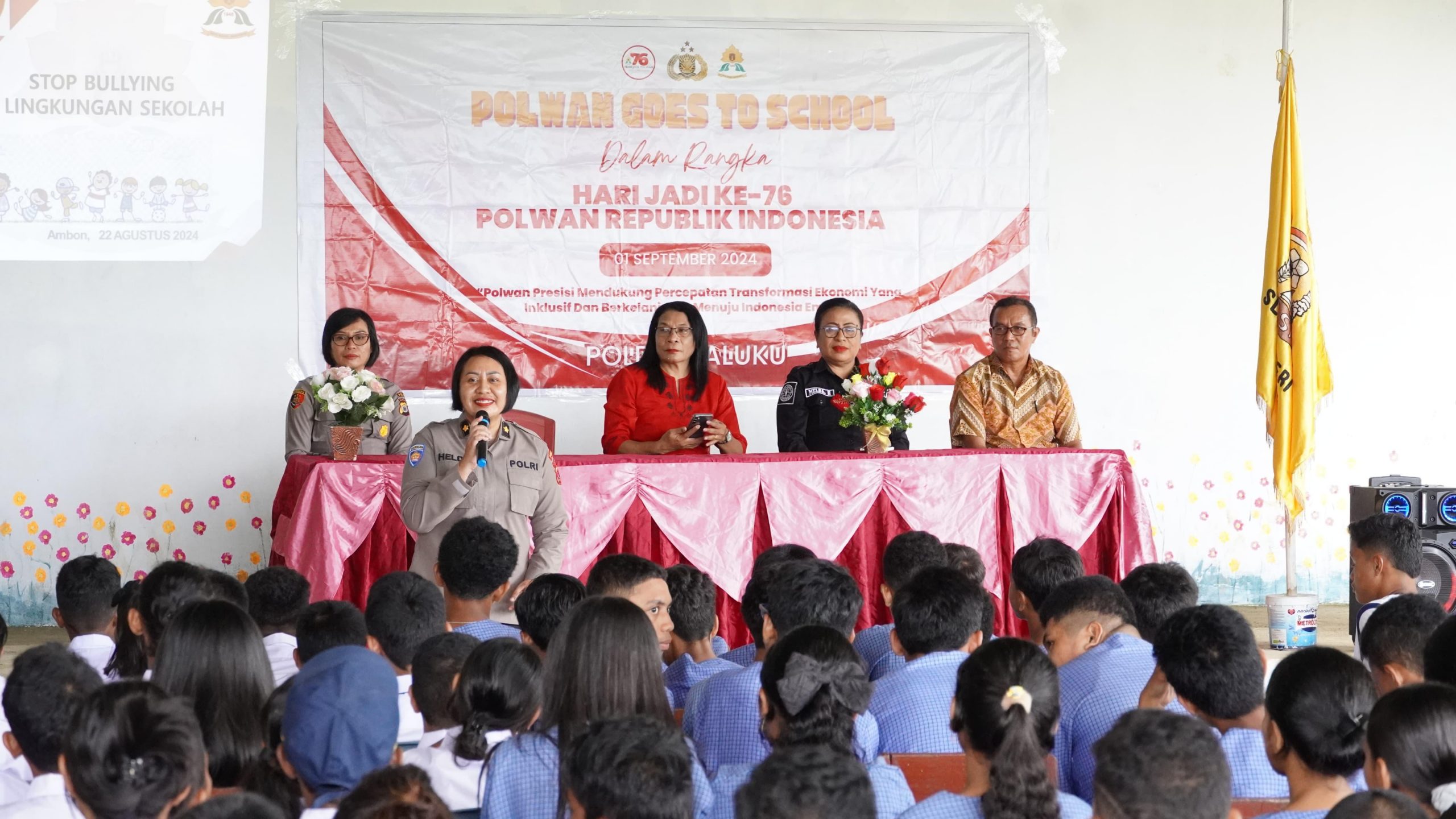 AMBON, MARINYO.COM- Kepolisian Wanita Polda Maluku terus menggelar program goes to school yang merupakan rangkaian kegiatan menyambut Hari Ulang Tahun (HUT) ke-76.