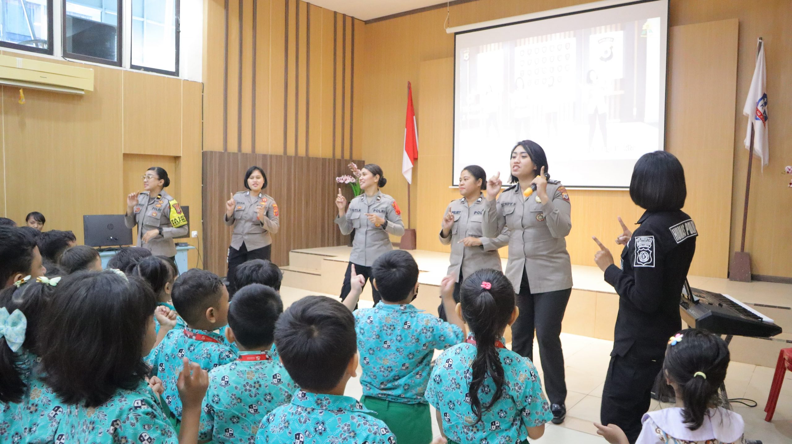 Selain memberikan edukasi, kegiatan ini juga diselingi dengan momen ceria di mana para Polwan bernyanyi bersama anak-anak. Suasana semakin meriah ketika sesi tanya jawab dibuka, di mana murid-murid terlihat antusias menjawab dan bertanya.