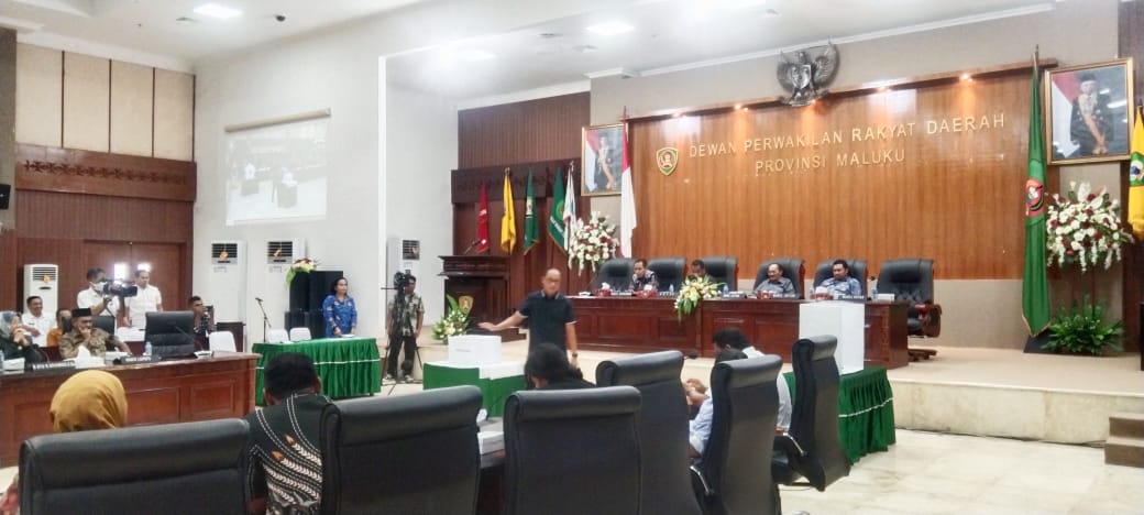 Untuk diketahui bahwa dari 45 anggota DPRD Maluku yang memiliki hak suara, 42 anggota yang menggunakan hak pilihnya, dua anggota yakni Halimun Saulatu dari Fraksi Demokrat dan Asri Arman (Demokrat) tidak hadir (ijin) dan satu anggota yang abstain yakni Wahid Laitupa dari PAN. (DAS)