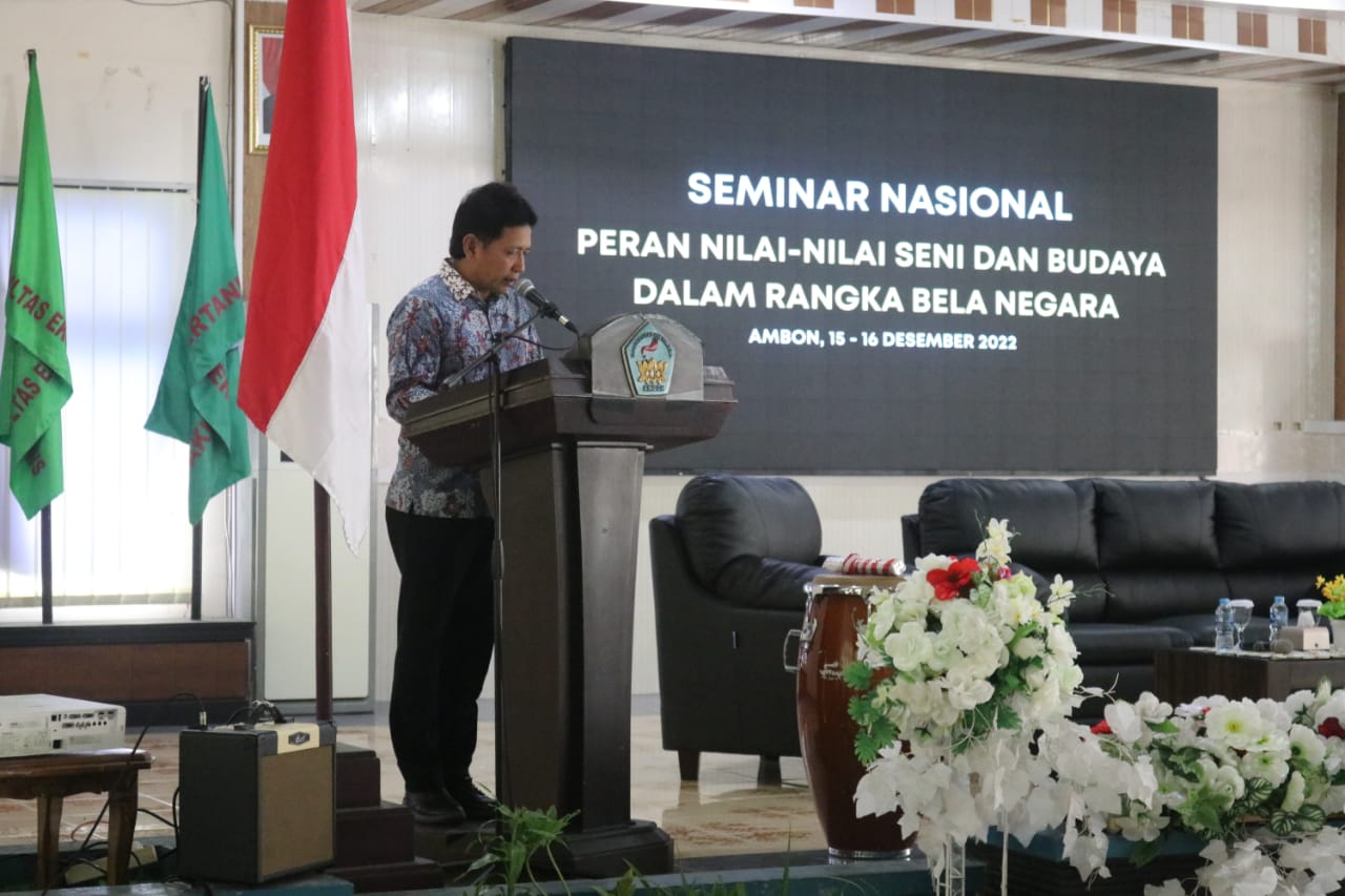AMBON, MARINYO.COM- Sebagai salah satu lembaga pendidikan yang bertanggung jawab dan untuk membangun persepsi dan upaya melindungi para seniman dan budayawan, Universitas Pattimura (Unpatti) Ambon menyelenggarakan Seminar Nasional tentang Peran Nilai-Nilai Budaya dalam rangka Bela Negara, di Aula Lantai II Gedung Rektorat Unpatti, Kamis, (15/13/2022).