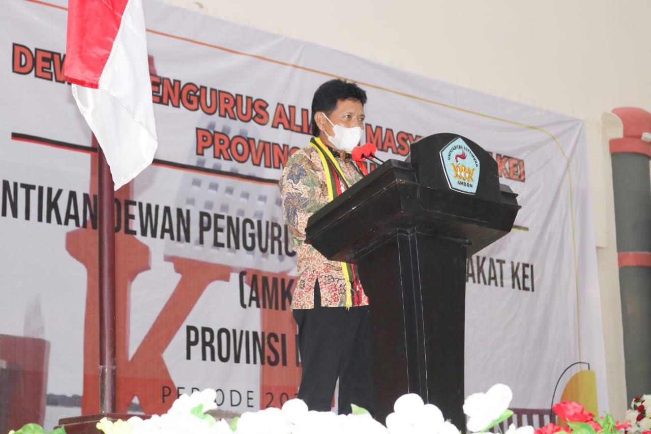 AMBON, MARINYO.COM- Pelaksana Harian (Plh) Sekretaris Daerah Maluku Sadali Ie, mewakili Gubernur Maluku Murad Ismail menghadiri pelantikan Dewan Pengurus Aliansi Masyarakat Kei (AMKAY) Provinsi Maluku periode 2021-2026 di Laboratorium Unpatti Ambon, Sabtu, (16/10/2021).
