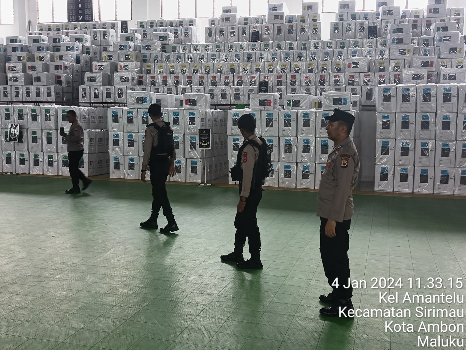 “Kami terus berupaya memberikan pengamanan serta pengawasan di wilayah hukum Polresta Ambon, khususnya Gudang KPU supaya situasi dan kondisi berlangsung aman kondusif,” jelas Kasi Humas.