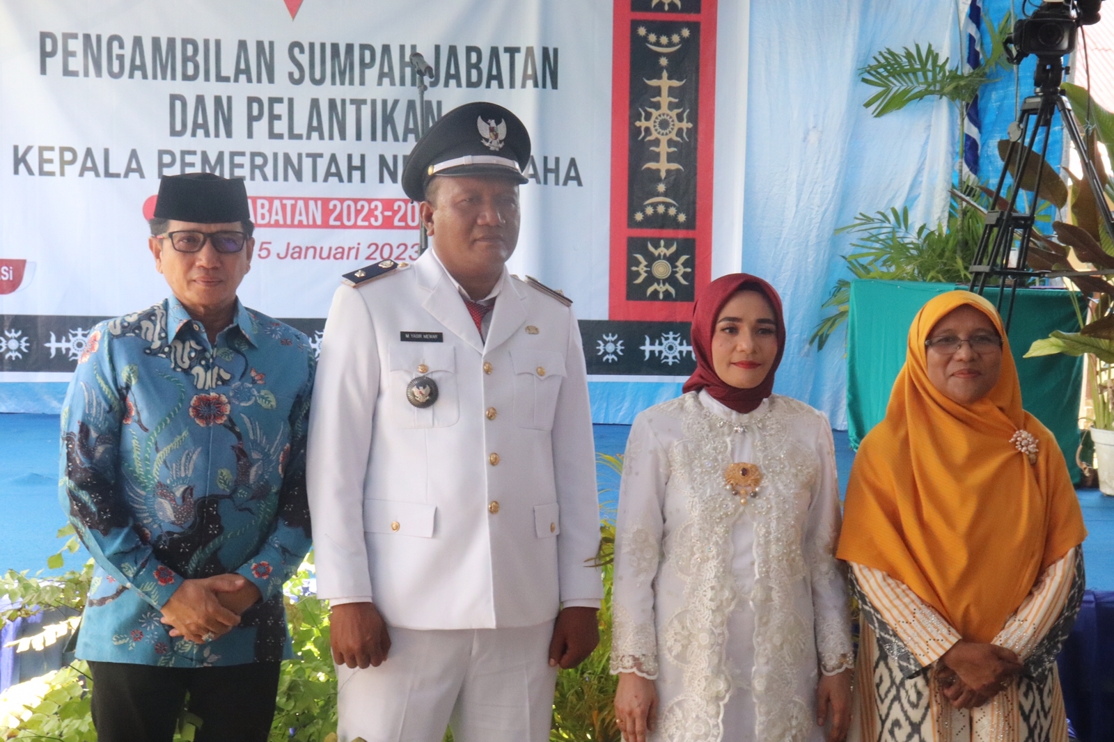 AMBON, MARINYO.COM– Sekretaris Daerah Provinsi Maluku Sadali Ie, menghadiri pelantikan Muhammad. Yasir Mewar sebagai Kepala Desa Pemerintah Negeri Laha periode 2023-2029, Kamis, (5/1/2023), di depan Kantor Balai Desa Pemerintah Desa Laha.