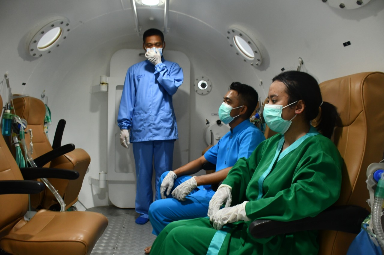 Para peserta Bimtek mendapatkan materi secara teori tentang terapi oksigen hiperbarik dan juga melaksanakan praktek secara langsung di Hiperbarik Chamber Rumkital dr FX Suhardjo.