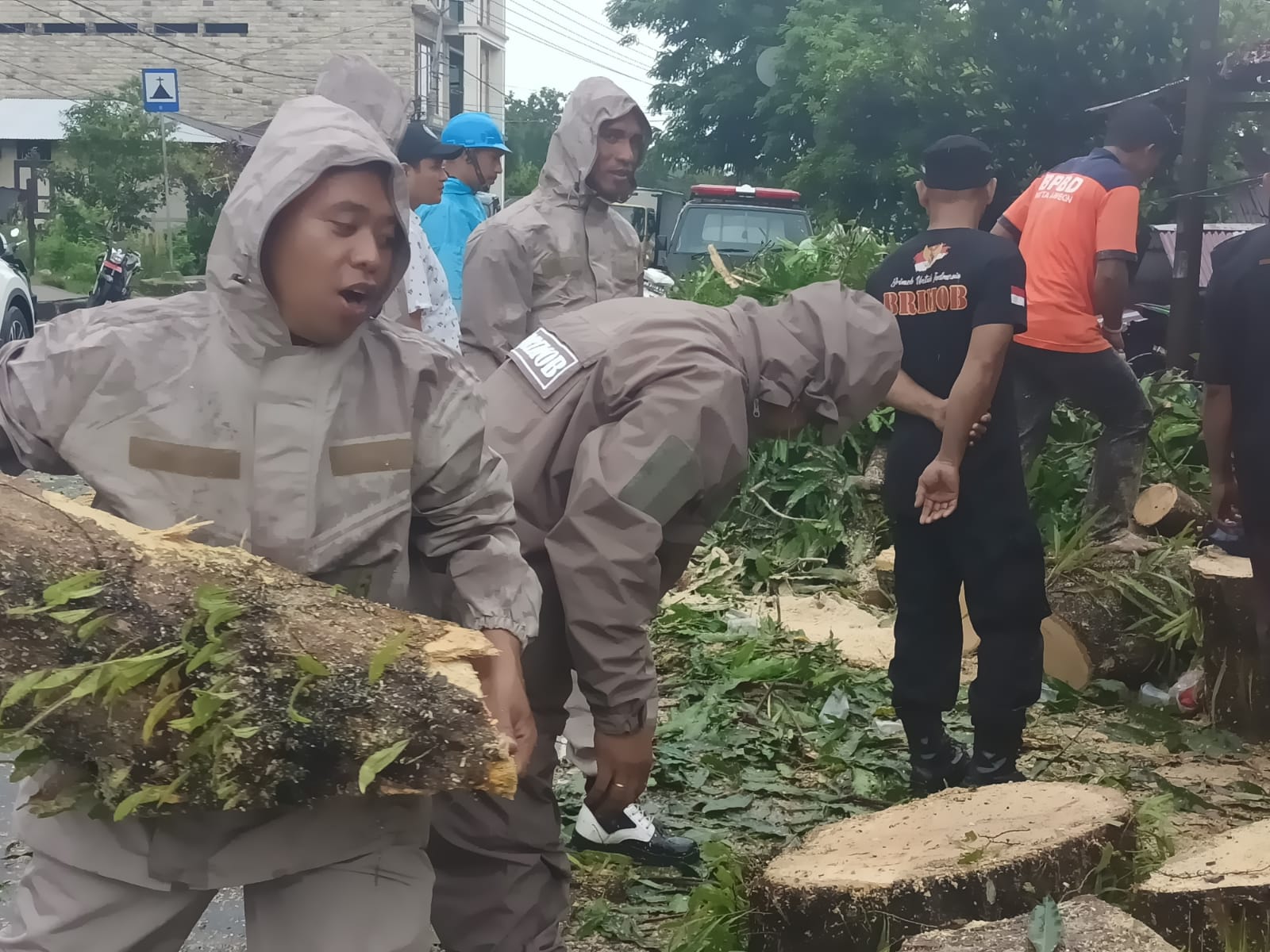 Wadanyon A Pelopor Satuan Brimob Polda Maluku AKP. S.Y. Basahona, mengatakan, pohon tumbang disebabkan terjadinya hujan deras yang disertai angin kencang.