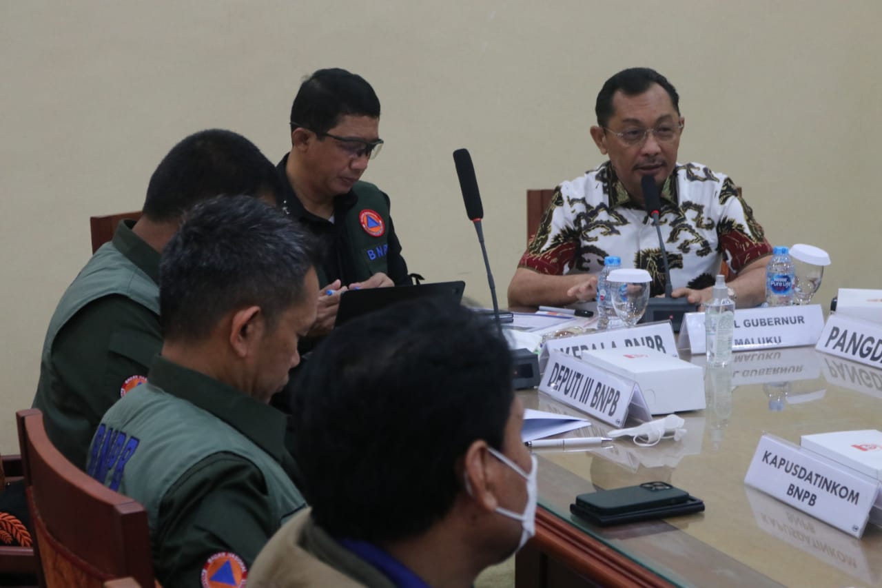 Rapat yang dipandu Kepala BNPB Letjen TNI. Suharyanto itu, dihadiri Deputi Geofisika BMKG Dr. Suko Prayitno Adi, Pangdam XVI/Pattimura Mayjen TNI Ruruh Aris Setyawibawa, Kapolda Maluku Irjen Pol. Lotharia Latif, Danlantamal IX Ambon Brigjen TNI. Said Latuconsina, Kabinda Maluku Brigjen. TNI. Anton Irianto Popang, Kabakamla Haris Joko Nugroho, Wakil Gubernur Maluku Barnabas Natanhiel Orno, Asisten Perekonomian dan Pembangunan Setda Maluku Meikyal Pontoh, sejumlah pimpinan OPD lingkup Pemprov Maluku, Pj. Bupati KKT Danny Indey, Inspektur Kabupaten MBD dan lainnya.