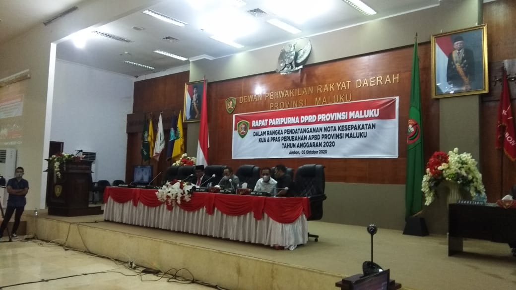 Hari ini dipertemukan kembali untuk mengikuti rapat paripurna DPRD Provinsi Maluku sebagai rangkaian dari proses penyusunan dan pembahasan Rancangan Peraturan Daerah tentang perubahan APBD tahun anggaran 2020,” tandas Wagub dalam sambutannya yang disampaikan dalam rapat paripurna dalam rangka penandatanganan nota kesepahaman KUA PPAS Perubahan APBD 2020, Senin (5/10/2020) secara virtual.