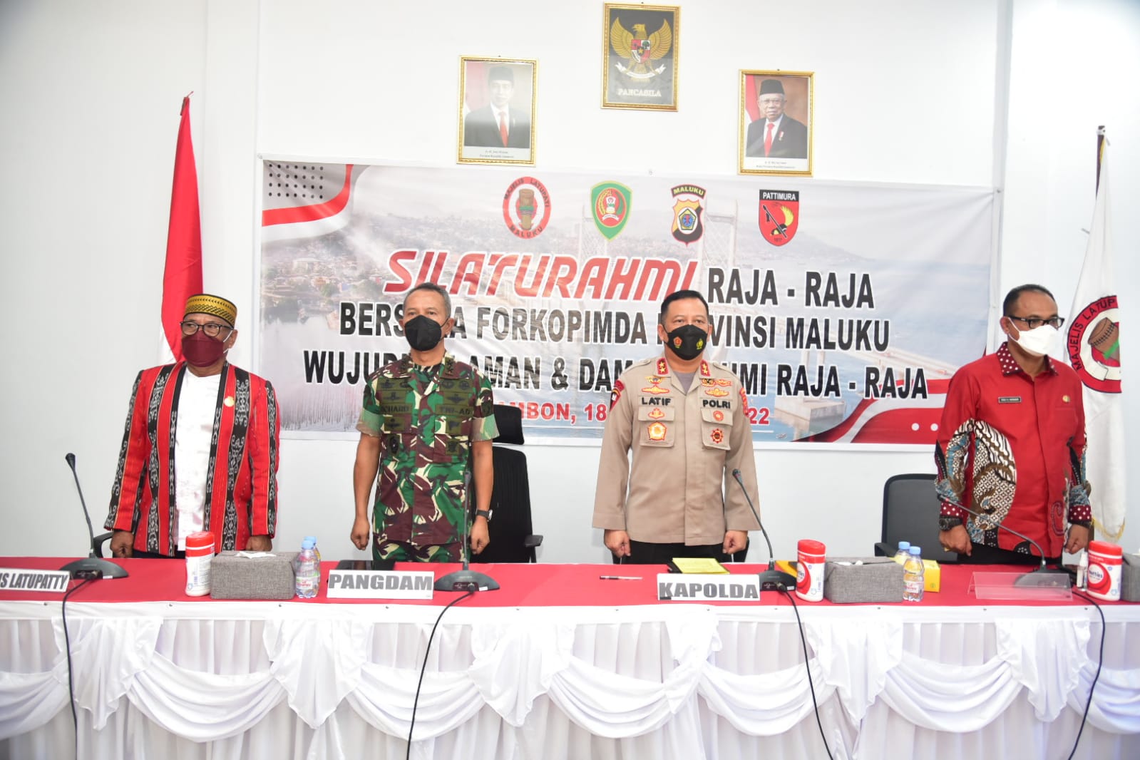 AMBON, MARINYO.COM- Untuk mewujudukan rasa aman dan damai, para Raja-raja se Maluku bersilaturahmi dengan Forkopimda Maluku yang bertempat di Gedung Majelis Latupati Provinsi Maluku, Kota Ambon, Jumat (18/2/2022).